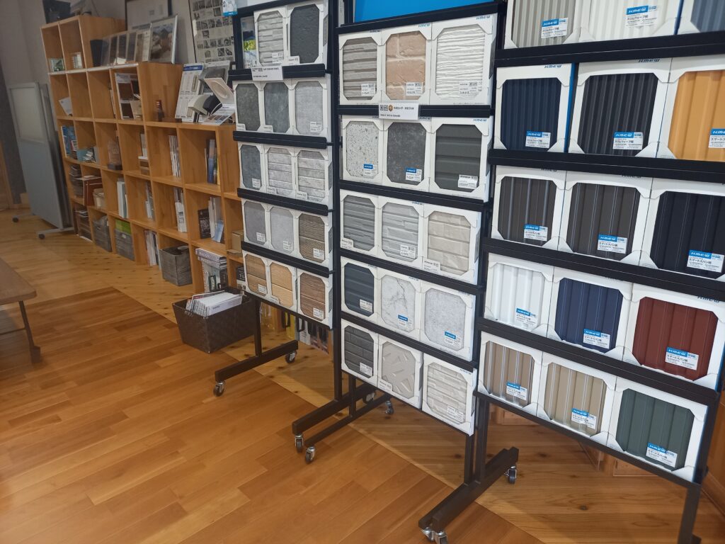 壁材やクロスの見本がずらり。
